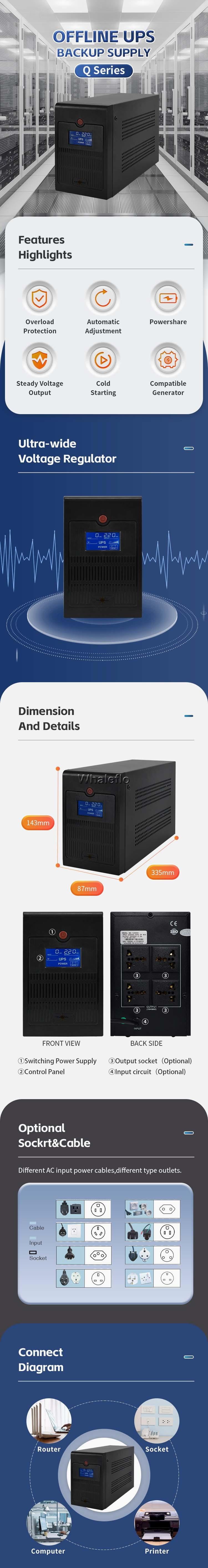 WhalefloSolar Uninterrupted Power Supply 220V 50Hz/60HZ 1200VA 720W Offline UPS with 2pcs 12V 7AH Battery